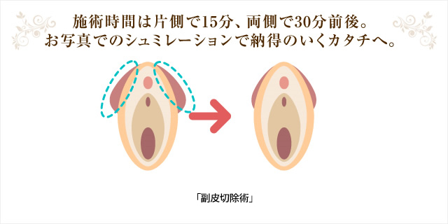 副皮は手術しないという考え方もありますが、全体の見た目、バランスに大きく影響します。また、ヒダの間に垢がたまりやすく、臭いや汚れの原因になってしまいます。