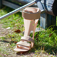 立位・歩行時に膝折れが生じなくなれば、下腿部より足部までの装具で足関節の動きを制御する目的で使用します。各部位の各種調整によって、立ったり、歩行したりの難易度調整が可能になります。